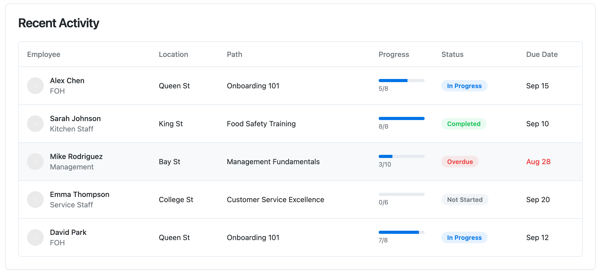 Save managers hours by automating repetitive training tasks while keeping staff engaged and accountable.